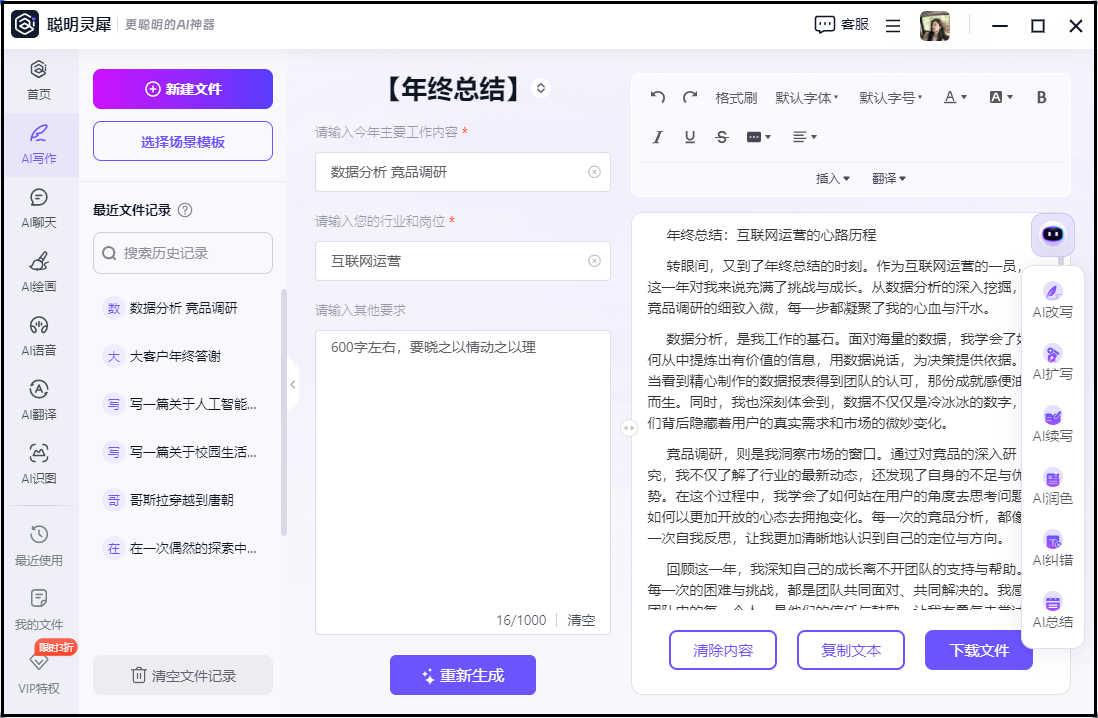 2、进入之后就会看到有各类AI写做场景选项,也能够做为参考本人撰写,若是你正在为岁暮的工做总结感应烦末路的话,说不定可以或许帮帮到你哦。语句通畅且富有逻辑。